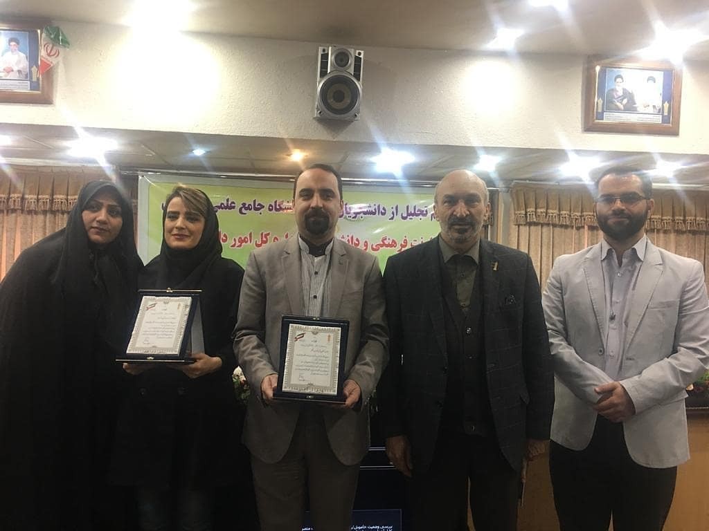 در پایان این مراسم از "بیژن نصیری اعظم"، دانشجوی رشته تجاری سازی مقطع کارشناسی مرکز آموزش علمی کاربردی قند کرج و "اشرف حنیفه نیک آبادی" دانشجوی مقطع کارشناسی مرکز آموزش علمی کاربردی زرماکارون و 14 نفر از دانشجویان نمونه دانشگاه جامع علمی کاربردی سراسر کشور تقدیر به عمل آمد.